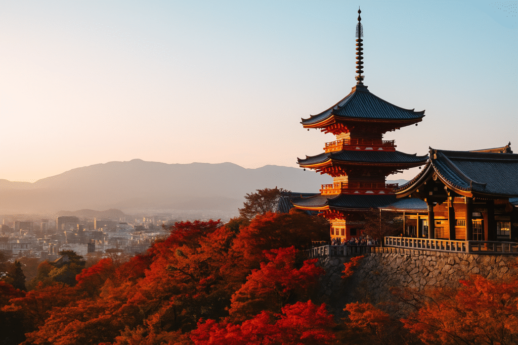 (📸“Sunset view over Kyoto from Kiyomizu-dera Temple”)