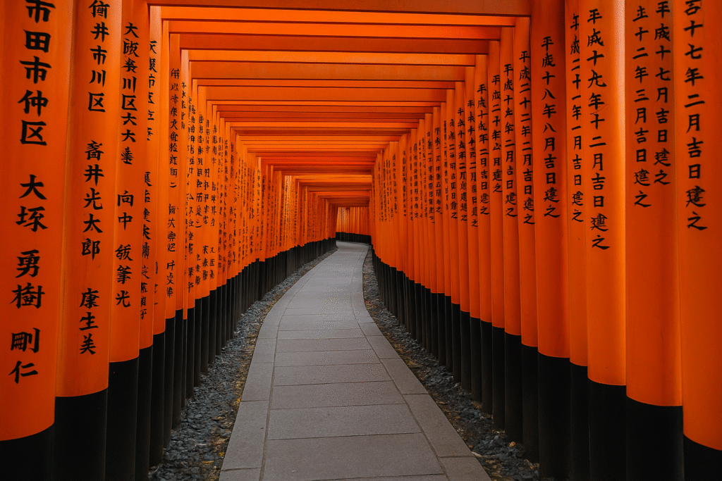 (📸“Fushimi Inari torii gates path in Kyoto, Japan”)